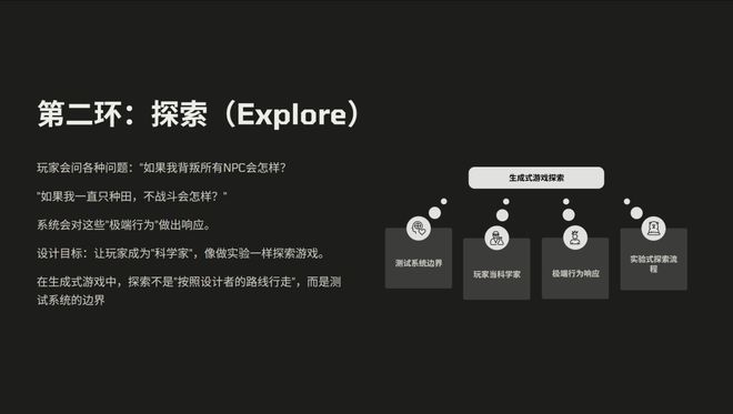 说完生成系统,我们再谈探索。探索并不仅仅是玩家对游戏内容的体验,更是一种对规则的验证和发现。在深度游戏中,真正的探索不是沿着设计者预设路线前进,而是测试游戏的性能与边界。