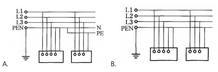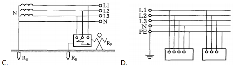 【2024-23】保护接零的原理是当设备某相带电体碰连设备外壳时,通过设备外壳形成相线对保护零线的单相短路,短路电流促使线路上的短路保护迅速动作,消除安全风险。下列4种供电系统中,可用于爆炸和火灾危险场所的是( )。