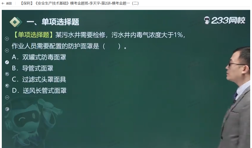 【知识点来源】《安全生产技术基础》模考金题班-李天宇-第3讲-模考金题一(三)