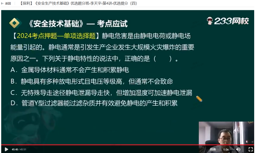 【知识点来源】《安全生产技术基础》优选题分班-李天宇-第4讲-优选提分(四)