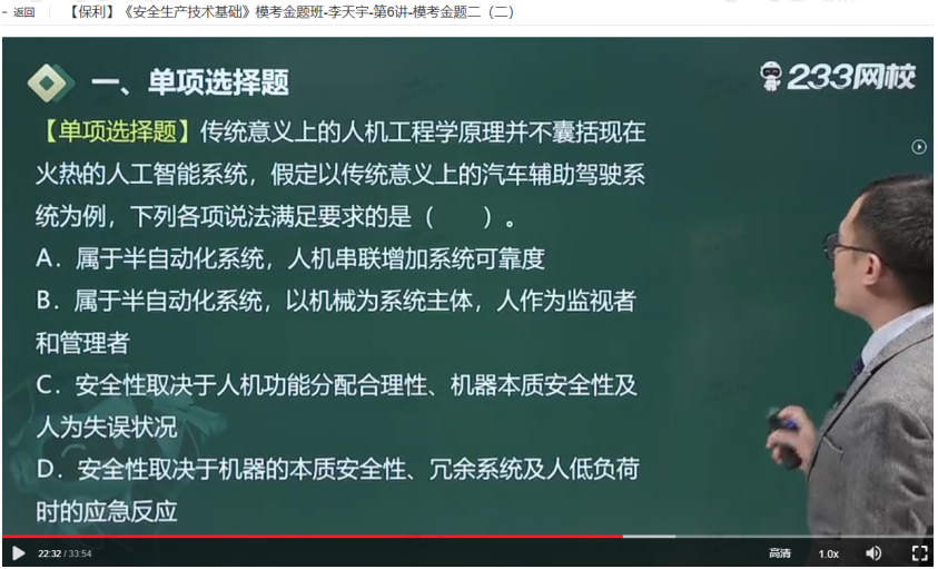 【知识点来源】《安全生产技术基础》模考金题班-李天宇-第2讲-模考金题一(二)