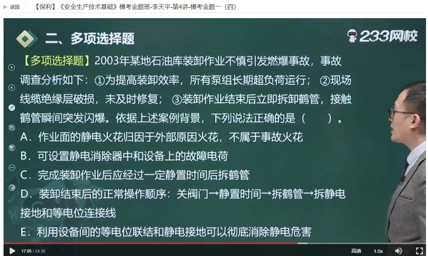 【知识点来源】《安全生产技术基础》模考金题班-李天宇-第4讲-模考金题一(四)