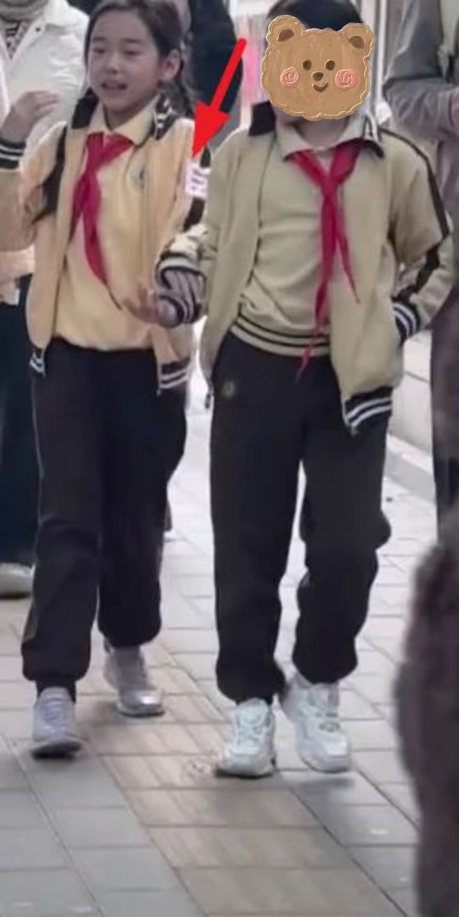 镜头里的小酒窝穿着蓝白相间的校服,背着卡通书包,跟在妈妈身后时身姿挺拔,面对镜头落落大方,完全没有同龄孩子的羞涩。最吸睛的莫过于她左臂上的三道杠袖章,要知道在小学里,这可是品学兼优、具备领导能力的象征,绝非普通孩子能获得。有网友调侃:“这才是真正的‘别人家的孩子’,星二代里少见的低调实力派。”