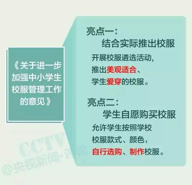 虽然说,校服穿着好不好看,某种程度上看颜值,但是穿出个性,穿着安全,价格又可以接受是大多数学生的心愿。终于,小伙伴们的心愿要成真了——近期,教育部等四部委联合下发了一份《关于进一步加强中小学生校服管理工作的意见》。