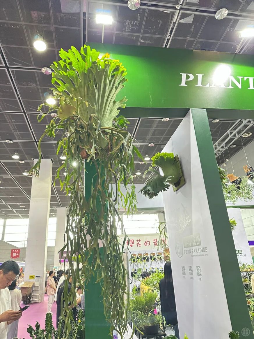现场一株名为“铁王座”的银叶鹿角蕨凭借着六位数的售价成为众人瞩目的焦点。“这是一个稀有物种,生长极其缓慢、养护成本较高,加上绒毛密布、丝冠又多,造型甚是优美。”参展商“出类植造”合伙人秦钦德介绍,鹿角蕨通过板植法镶嵌于墙面,能营造出一种自然与艺术完美融合的氛围,凭借着这种高级感火爆出圈,身价不菲。