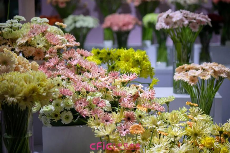 今年的中花大会主打仪式感与科技感交融。云南新桉农业用1.2万枝冬青扎起了10余株巨型红色圣诞树,充满喜庆;迪瑞特用上万枝绣球把整个展厅铺成一个粉色花海,浪漫十足;通过基因编辑技术培育的复色多头玫瑰吸引着观展者用镜头捕捉花间光影。